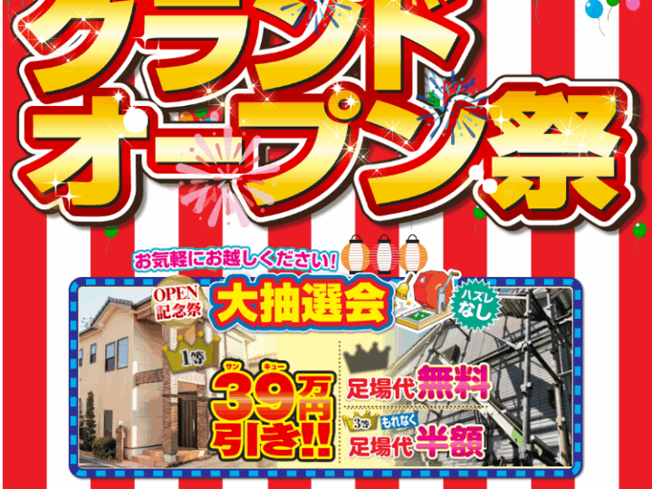みなさんこんにちは。 外壁塗装・屋根塗装・防水工事専門店のアキホームです。 いつもご愛顧いただき、誠にありがとうございます。 このたび、より多くのお客様に快適にご相談いただけるよう、福岡市早良区にショールームをオープンする運びとなりました!   グランドオープン 10月4日(土)5日(日)   ぜひ最後までお読みくださいませ。   🎉 早良区ショールーム オープン情報 🎉 【場   所】 〒814-0021 福岡県福岡市早良区荒江3丁目15番12号 (長浜御殿の通り沿い) 【営 業 時 間】 9:00~18:00 【お問い合わせ】 TEL:092-407-8442 ショールームでできること 📋 専門スタッフによる無料相談 お住まいの外壁・屋根の劣化状況、外壁塗装工事のことについてなど、どんなお悩みでもお気軽にご相談ください。 🏠 実際の塗装サンプルをご覧いただけます 豊富なサンプルを用意しております。 サンプルを見ながらの説明。塗装後のお住まいをイメージできます。 実際に「見て」「触れる」ことができるショールームで、お家の未来を一緒に考えていきましょう!   オープン記念イベント日時 10月4(土)5日(日)の2日間   10:00~16:00   ご来場特典 ◎ご来場特典:サイコロの出た目の数だけカップラーメンプレゼント! ※アンケートにご記入いただける方に限ります。 ※39(サンキュー)組限定となります。   ◎お子様特典:お菓子の詰め合わせプレゼント! ※お菓子の詰め合わせはお一人1回限り、無くなり次第終了します。 ※お菓子の内容は変更になる場合もございます。 ※小学校のお子様まで。     お見積り特典 ◎お見積り特典①:QUOカード 3,000円分プレゼント ※お見積り提出時にお渡しいたします。 ※30万円(税別)以上のお見積りに限ります。   ◎お見積り特典②:ガラポンで大抽選会!(ハズレ無し) お見積りをご依頼のお客様に抽選会に参加していただきます。 抽選結果で工事契約の際お値引きの特典をご用意。  1等 39万円引き  ×  1本  2等 足場代無料   ×  3本  3等 足場代半額   ×  もれなく ※6月30日(月)までに100万円(税別)以上の工事を契約のお客様に限ります。 ※戸建のお客様に限ります。     当日は混雑する場合がございます。 事前にご予約をいただくとスムーズにご案内することができます。 ホームページ・お電話でお気軽にご予約ください。 イベントの二日間は営業時間が10:00~16:00となります。お間違えのないようお気をつけくださいませ。   これからも地域の皆さまに信頼される塗装専門店を目指し、スタッフ一同、精一杯取り組んでまいります。 新しいショールームで皆さまとお会いできることを、心より楽しみにしております!   アキホームでは、福岡市を中心に、外壁塗装や屋根塗装、防水工事などを手掛けております。 みなさまに気軽に相談できる会社を目指しサービスを展開しておりますので今後ともよろしくお願い致します。     ご相談・現地調査・お見積り提出まで無料です。 不明な点はお気軽にお問い合わせくださいませ。 アキホームショールームのご案内  ショールームには皆様が実際に見て触れて頂けるものをご用意しております。 ご相談・お問い合わせはお気軽に!!  御見積り依頼、各種診断、不明な点等、お気軽にどうぞ。  お待ちしております。 アキホームの施工事例集  「外壁塗装・屋根塗装を考えているけどイメージがわかない・・・」  そんな方は河合塗装工業が施工させて頂いたお宅をご覧ください! 「屋根・外壁診断」はアキホームにおまかせください!  まずはお家の劣化状況をしっかりと把握しましょう。  アキホームではご相談・現地調査・お見積り提出まで無料でさせて頂きます! アキホームの雨漏り診断  雨漏りのプロが原因を特定します。  お家の状況に合わせた納得のご提案をさせて頂きます。