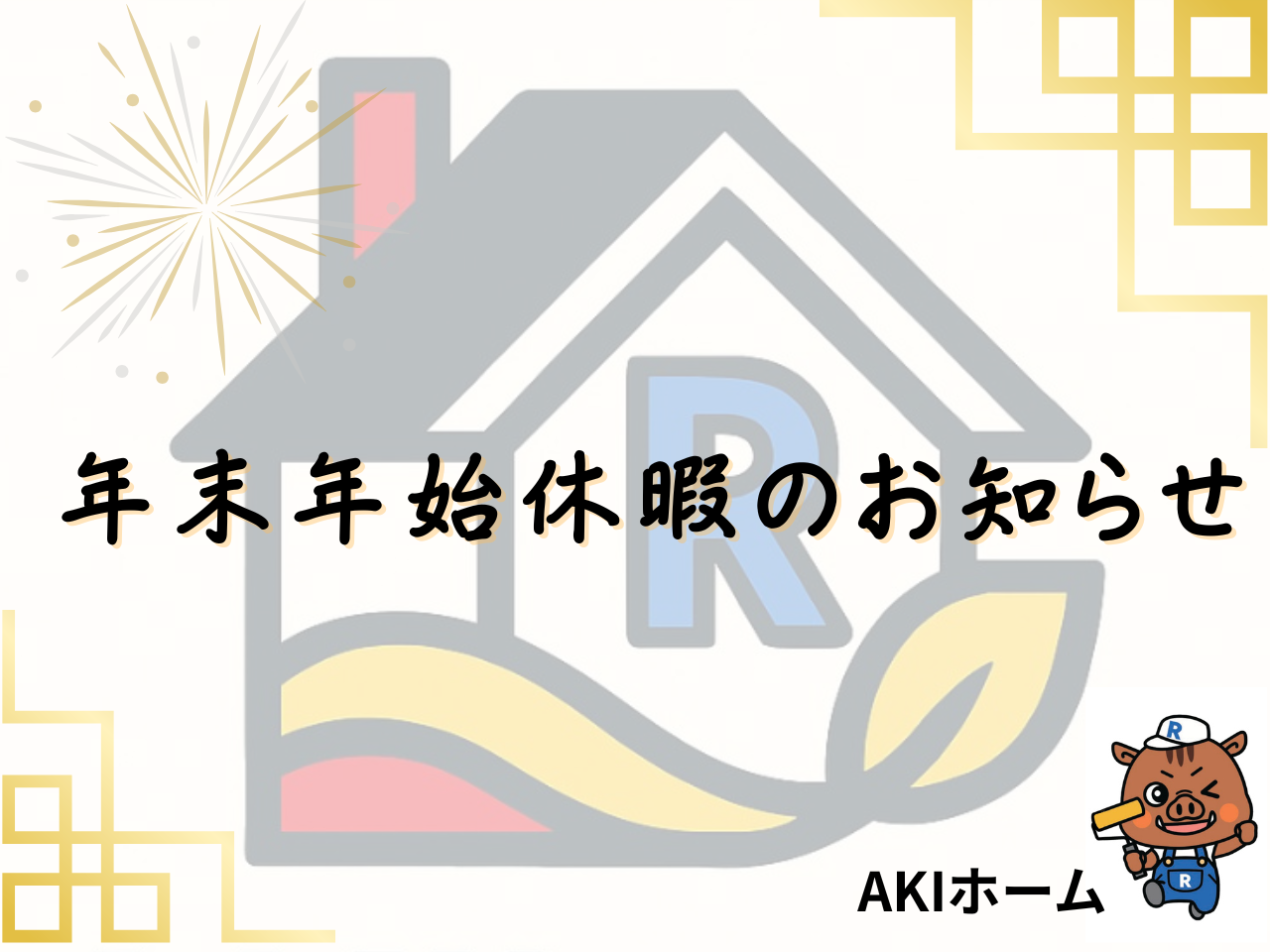 こんにちは。 外壁塗装・屋根塗装・防水工事専門店のアキホームのブログをご覧いただき、ありがとうございます。 当ショールームは、下記の期間を年末年始のお休みとさせていただきます。 【お休み期間】 2025年12月27日(土)~2026年1月4日(日) 2026年1月5日(月)から、通常どおり営業いたします。 お休みの間にいただいた ・お問い合わせ ・ご相談 ・ご予約 につきましては、営業再開後に順番にご連絡いたします。 お返事まで少しお時間をいただく場合がございますが、ご了承ください。 今年もたくさんのご来店・ご相談をいただき、ありがとうございました。 来年も、外壁塗装や屋根塗装について、わかりやすく丁寧にご案内してまいります。 どうぞ良いお年をお迎えください。 来年もアキホームをよろしくお願いいたします。 アキホームでは、福岡市を中心に、外壁塗装や屋根塗装、防水工事などを手掛けております。 みなさまに気軽に相談できる会社を目指しサービスを展開しておりますので今後ともよろしくお願いいたします。                                     ご相談・現地調査・お見積り提出まで無料です。 不明な点はお気軽にお問い合わせくださいませ。           アキホームショールームのご案内  ショールームには皆様が実際に見て触れて頂けるものをご用意しております。 ご相談・お問い合わせはお気軽に!!  御見積り依頼、各種診断、不明な点等、お気軽にどうぞ。  お待ちしております。 アキホームの施工事例集  「外壁塗装・屋根塗装を考えているけどイメージがわかない・・・」  そんな方は河合塗装工業が施工させて頂いたお宅をご覧ください! 「屋根・外壁診断」はアキホームにおまかせください!  まずはお家の劣化状況をしっかりと把握しましょう。  アキホームではご相談・現地調査・お見積り提出まで無料でさせて頂きます! アキホームの雨漏り診断  雨漏りのプロが原因を特定します。  お家の状況に合わせた納得のご提案をさせて頂きます。
