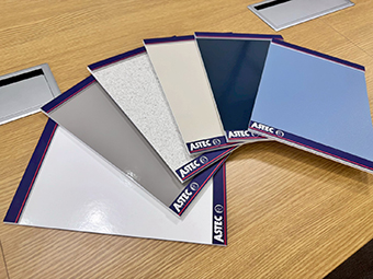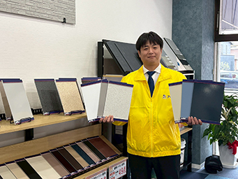 数十種類ある塗り板やパソコン、iPadを使い、お客様が塗装をイメージできるショールームとなっております。